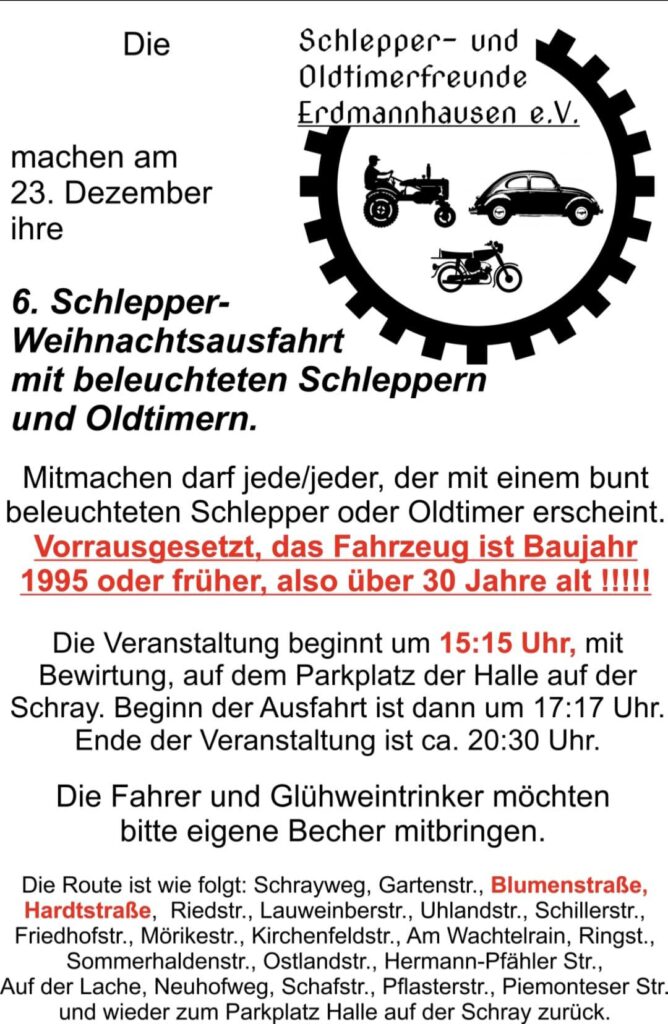Jede/r mit einem bunt beleuchtet und geschmücktem Schlepper oder Oldtimer darf mitfahren!